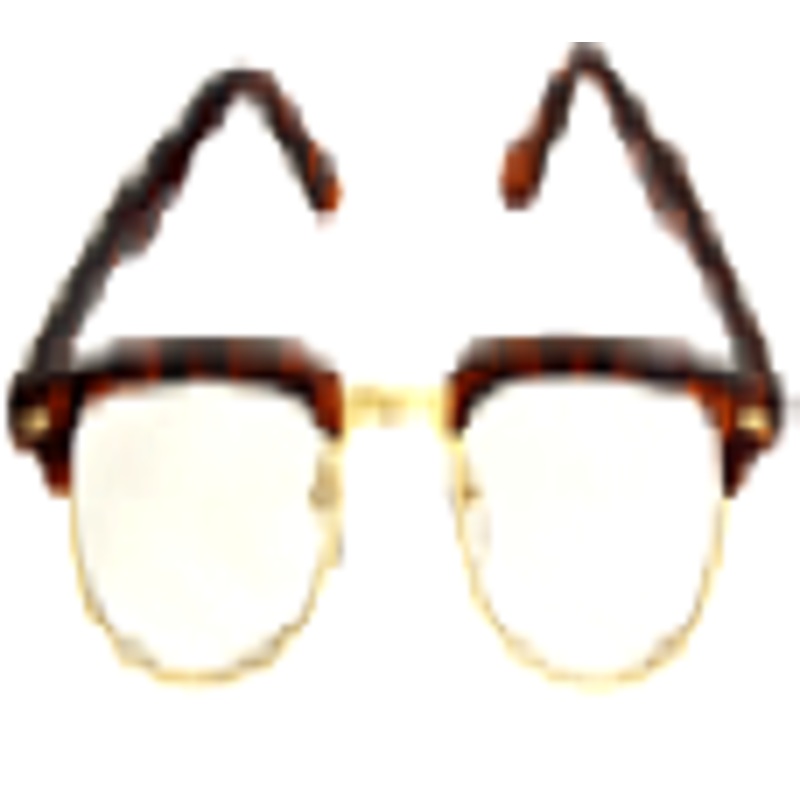 Get your "geek" on with these bold, "old-school" style horn-rimmed glasses.A look so dated that its hip again!Metal hinges, UV 400 protection,Colors: Tortoise Shell Frames, Gold Bridge & Rims w/Clear LensesOne Size: Fits adults & kids 12 & up**Costume sugg