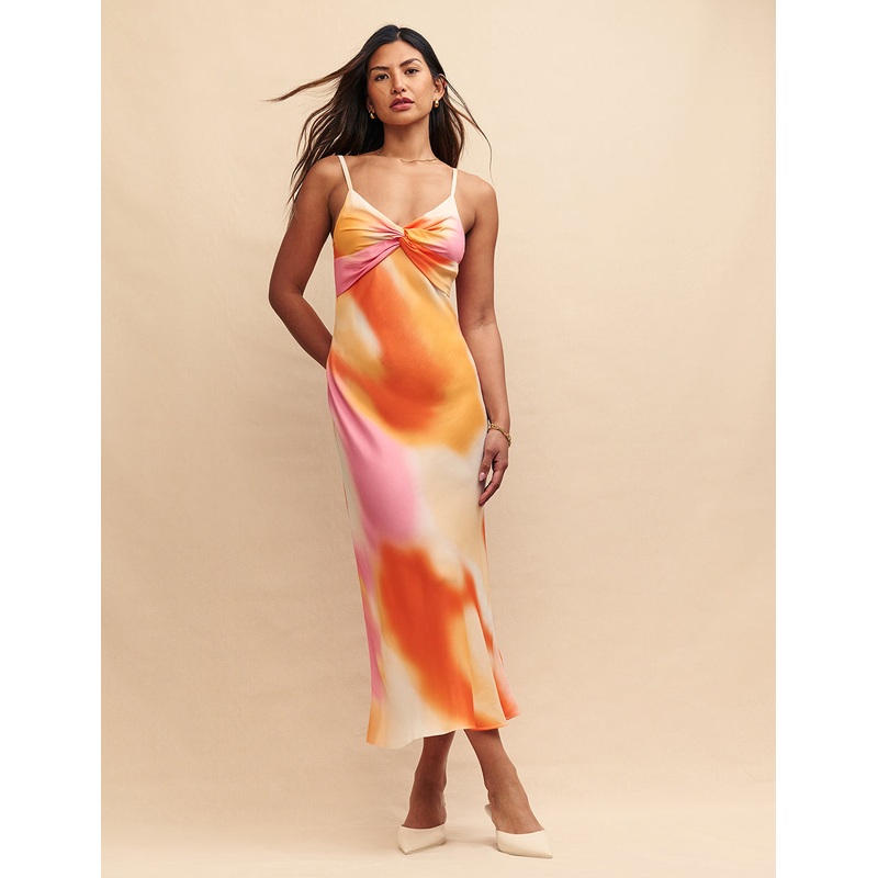 Meet Ida, who stands out in orange and pink sunset shades. Designed for a close cut that plunges into a v-shape, this midaxi is a classic slip dress that youll turn to all summer long. Were wearing ours with gold jewellery and elevated heels.V-neckAdjustab