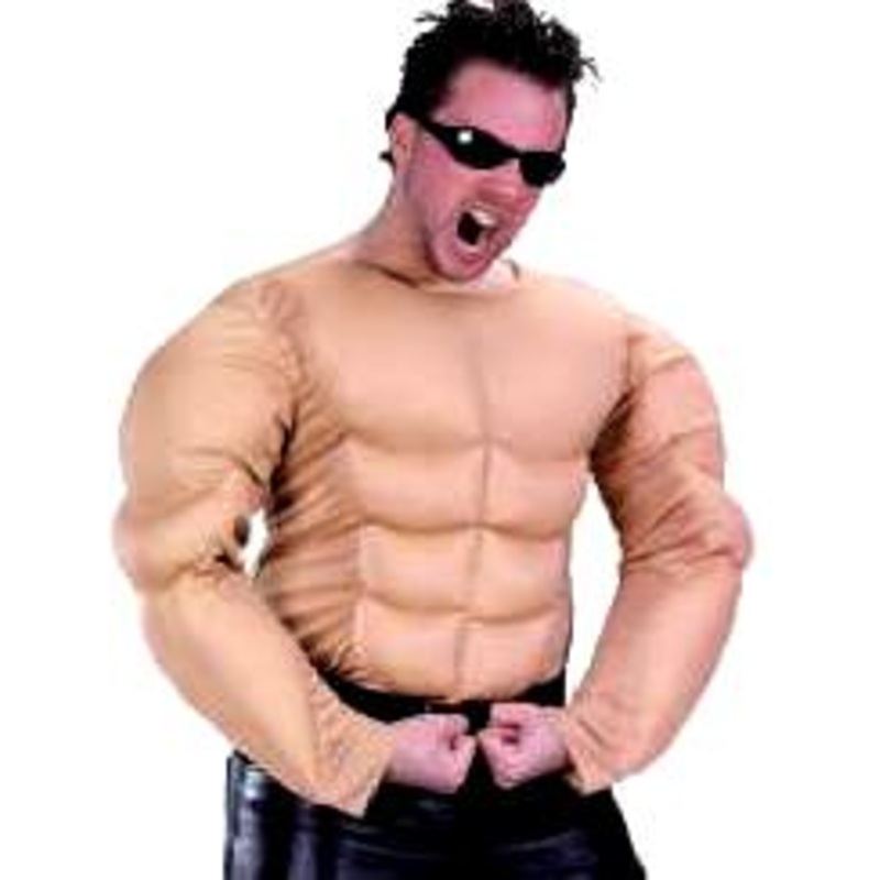 Includes: Foam Filled Padded Flesh color Muscle Shirt with self-stick closure back.