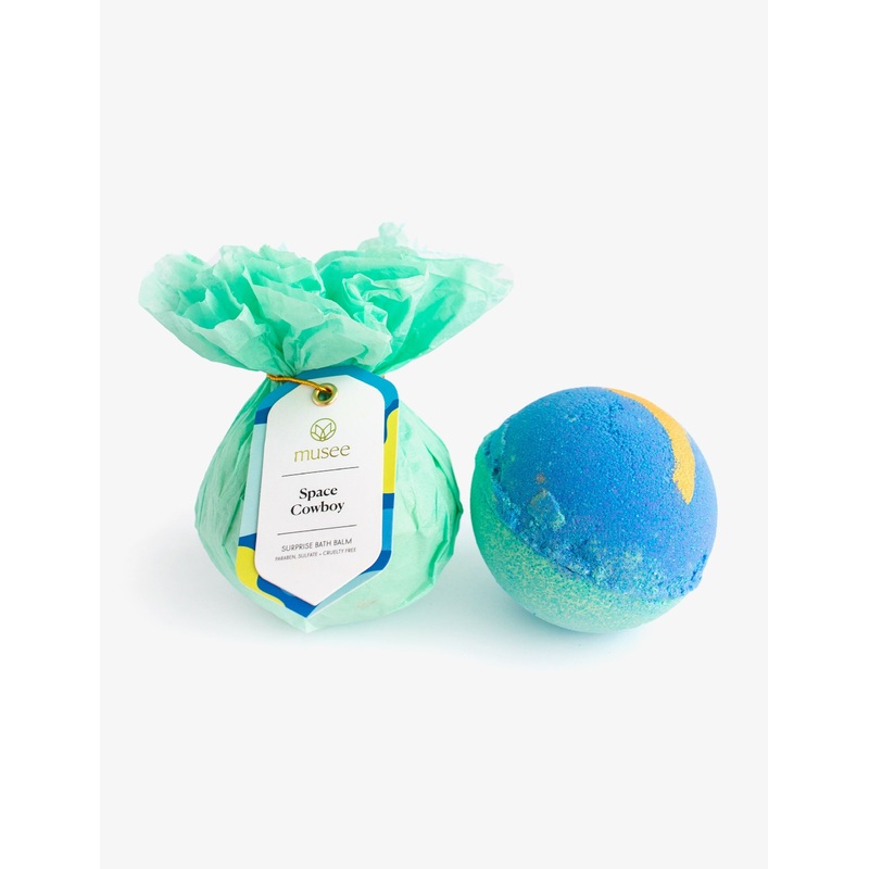 Let your imagination run out of this world with our all new Space Cowboy bath balm! With blue and green swirls, this fresh scent will transport you through the starts! Not to mention a stellar surprise on the inside!How to use:Draw up a warm bath. Place ba