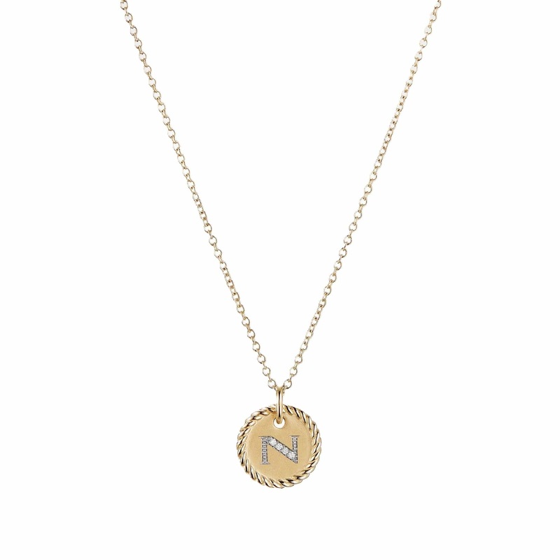 18-karat yellow gold Pav diamonds, 0.01 total carat weight Pendant, 10mm diameter Adjustable chain, 16-18″ long 18 IN