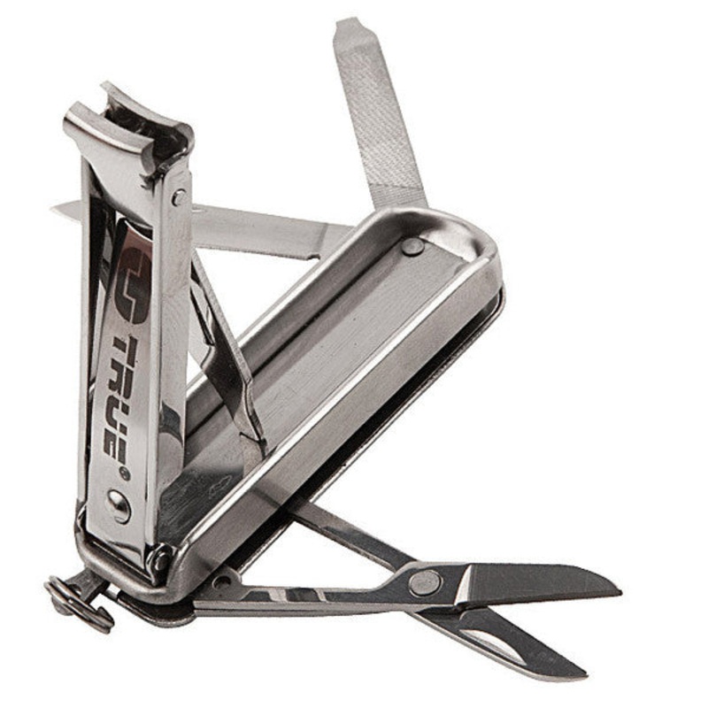 Contains man-sized super strong and sharp nail clippers for the hardest nails. Clippers spring out from the ergonomically shaped stainless steel body. It also houses a sharp blade, nail file, flat head screwdriver and a pair of self-sprung sharp scissors.
