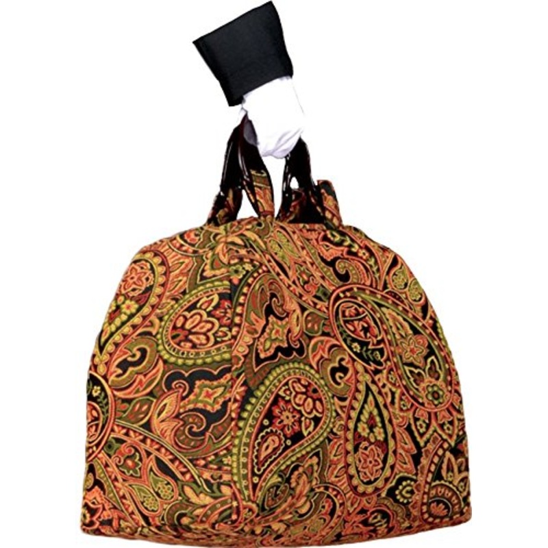 Paisley Carpet Bag with Woven Design.Color: MulticolorIncludes bag with synthetic resin tortoise shell-type handles / Fabric may subtly vary from shown. Colors: assorted (as shown) / One Size.Opening of bag has a Zipper not a clasp closure. Zipper opening