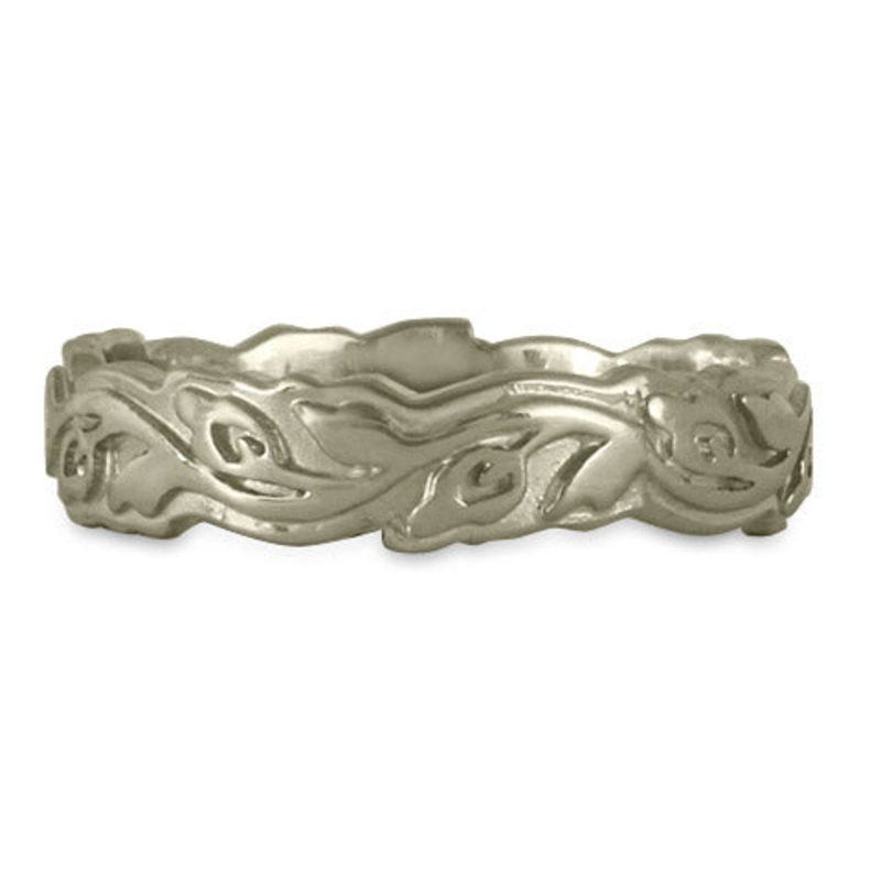 A favorite among many is the Flores ring which contains just a single vine representing one love, one life path, and one shared destiny. The Flores displays an effortless display of precious love rooted in the beauty of nature. Pictured in 14K White Gold.