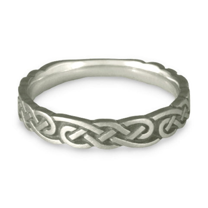 This Narrow Borderless Infinity Wedding Ring in Platinum by Katherine Aberle is made with eco-friendly methods using recycled Platinum. It is sent to you via free Fedex ground shipping. This ring is available in sizes ranging from size 5 through size 12. Other sizes may also be available. Please inquire by telephone for pricing on these.
