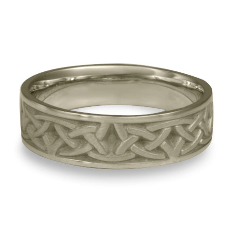 This Narrow Celtic Arches Wedding Ring in 14K White Gold by Katherine Aberle is made with eco-friendly methods using recycled 14K White Gold. It is sent to you via free Fedex ground shipping. This ring is available in sizes ranging from size 5 through size