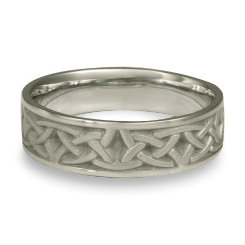 This Narrow Celtic Arches Wedding Ring in Platinum by Katherine Aberle is made with eco-friendly methods using recycled Platinum. It is sent to you via free Fedex ground shipping. This ring is available in sizes ranging from size 5 through size 12. Other s