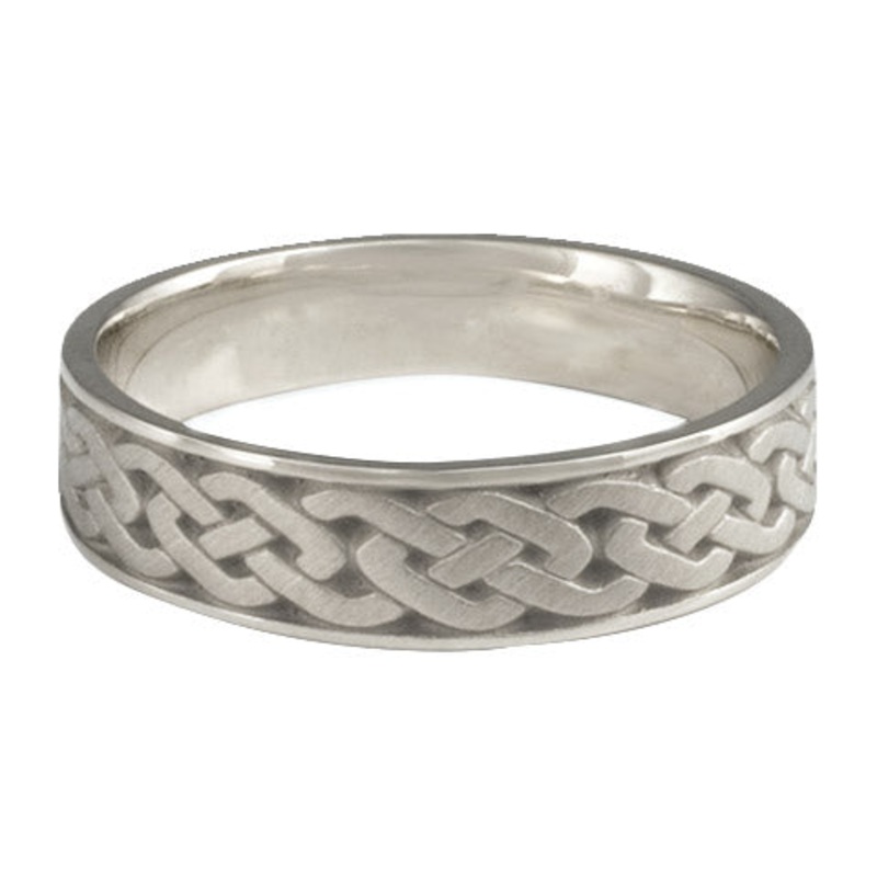 This Narrow Celtic Link Wedding Ring in Platinum by Katherine Aberle is made with eco-friendly methods using recycled Platinum. It is sent to you via free Fedex ground shipping. This ring is available in sizes ranging from size 5 through size 12. Other sizes may also be available. Please inquire by telephone for pricing on these.