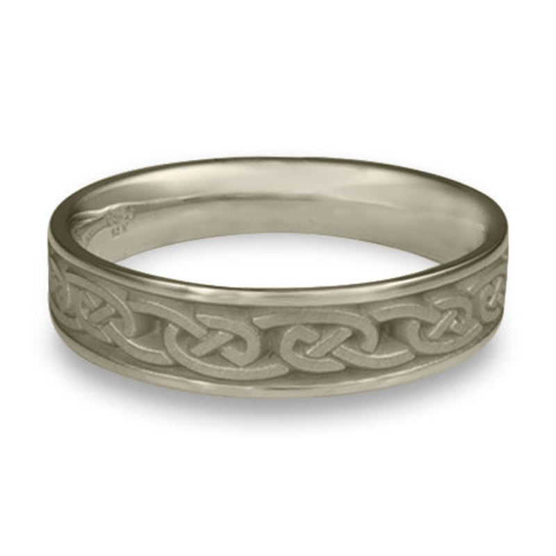 This Narrow Cheek to Cheek Wedding Ring in 14K White Gold by Katherine Aberle is made with eco-friendly methods using recycled 14K White Gold. It is sent to you via free Fedex ground shipping. This ring is available in sizes ranging from size 5 through size 12. Other sizes may also be available. Please inquire by telephone for pricing on these.