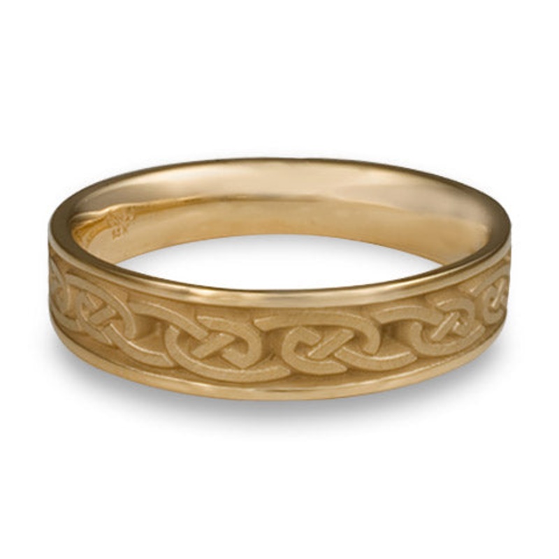 This Narrow Cheek to Cheek Wedding Ring in 14K Yellow Gold by Katherine Aberle is made with eco-friendly methods using recycled 14K Yellow Gold. It is sent to you via free Fedex ground shipping. This ring is available in sizes ranging from size 5 through size 12. Other sizes may also be available. Please inquire by telephone for pricing on these.