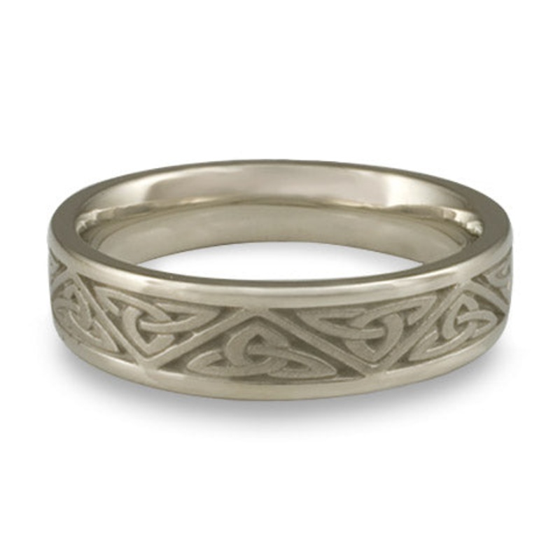 This Narrow Trinity Knot Wedding Ring in 14K White Gold by Katherine Aberle is made with eco-friendly methods using recycled 14K White Gold. It is sent to you via free Fedex ground shipping. This ring is available in sizes ranging from size 5 through size 12. Other sizes may also be available. Please inquire by telephone for pricing on these.