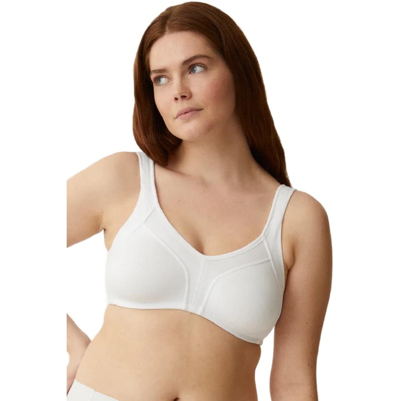 Naturana Heritage Minimizer and Side Smoother Wireless 90% Cotton Bra in White for everyone who appreciates a secure hold. This bra was developed so that you feel safe and comfortable with every movement and can concentrate on the important things in every
