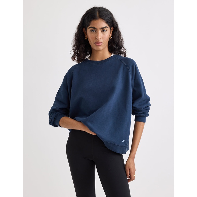 The sweatshirt youll never want to take off. This navy blue long sleeved crew neck staple has you covered. With a relaxed fit and soft fabric, its all about comfort and style. Because who says you cant have both? Were wearing ours with leggings and trainers.