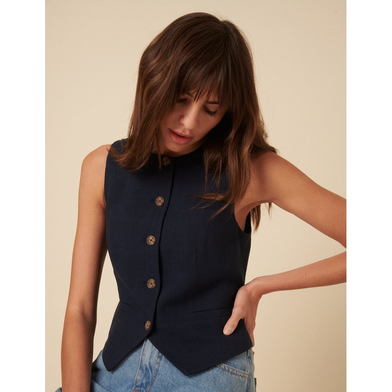This navy waistcoat will become your new go-to. Its designed with modern tailored details like the welt pockets and button down front. Wear it as a two-piece with the matching tailored trousers.