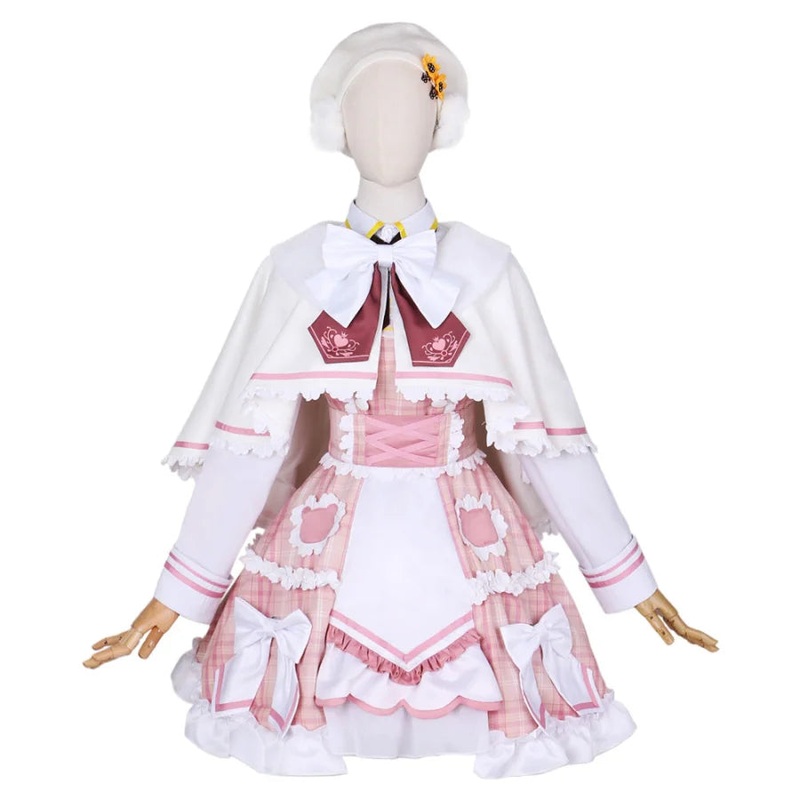 DescriptionSize ChartNote: Pls check item size chart and delivery date before ordering.Includes:Shirt Dress ShawlHat Waist bow*2 Bow tieHair ball hairpin*2 Sunflower hairpin*2 GirdleSocks*2 Lace bow tie Leg accessories Tie Materials:Pearl chiffon, chiffon,