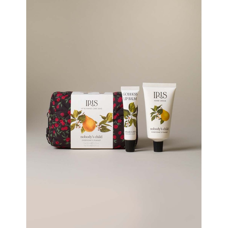 Keep your lips and hands soft on the go with our Iris Gift Set. This vegan duo includes a nourishing hand cream with cold-pressed jojoba and baobab oils, and a fragrance-free lip balm made with rich shea butter. Both are housed in a cosmetic bag featuring our signature cherry print. Part of our PETA-approved collection celebrating our founders heritage, this set is designed to nourish and protect.