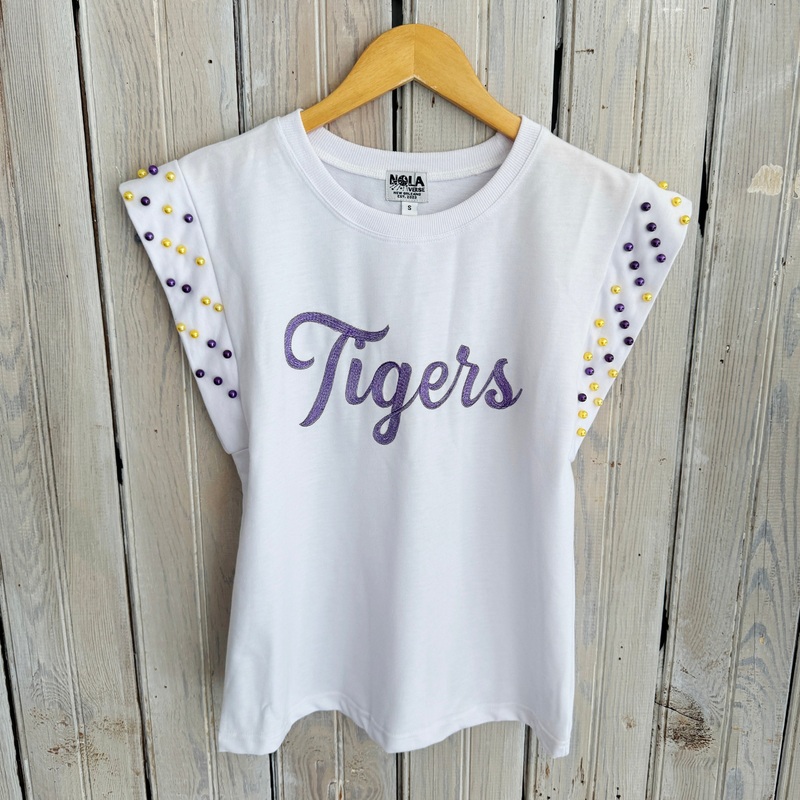 LSU Tigers Pearl Sleeve Top. Womens Top, fits true to size.