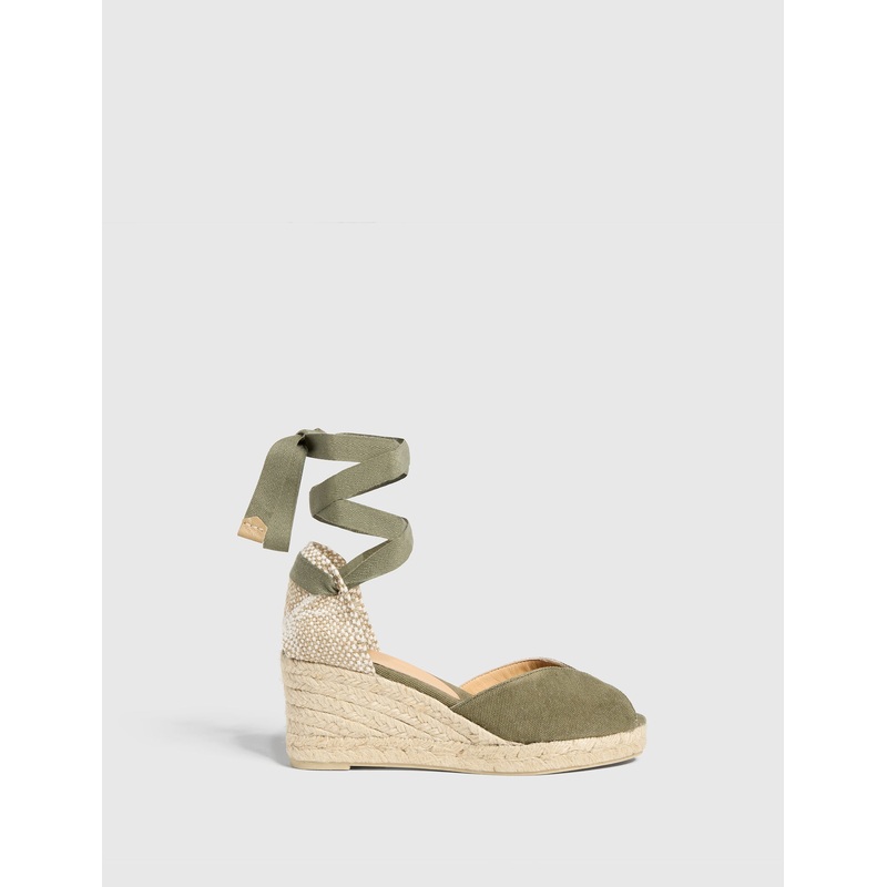 Olive and effortless. Tie up Bilina's classic espadrilles with a midi dress for that forever-stylish, Castaer-approved summer look. By Castaer Wedge style Tie fastening