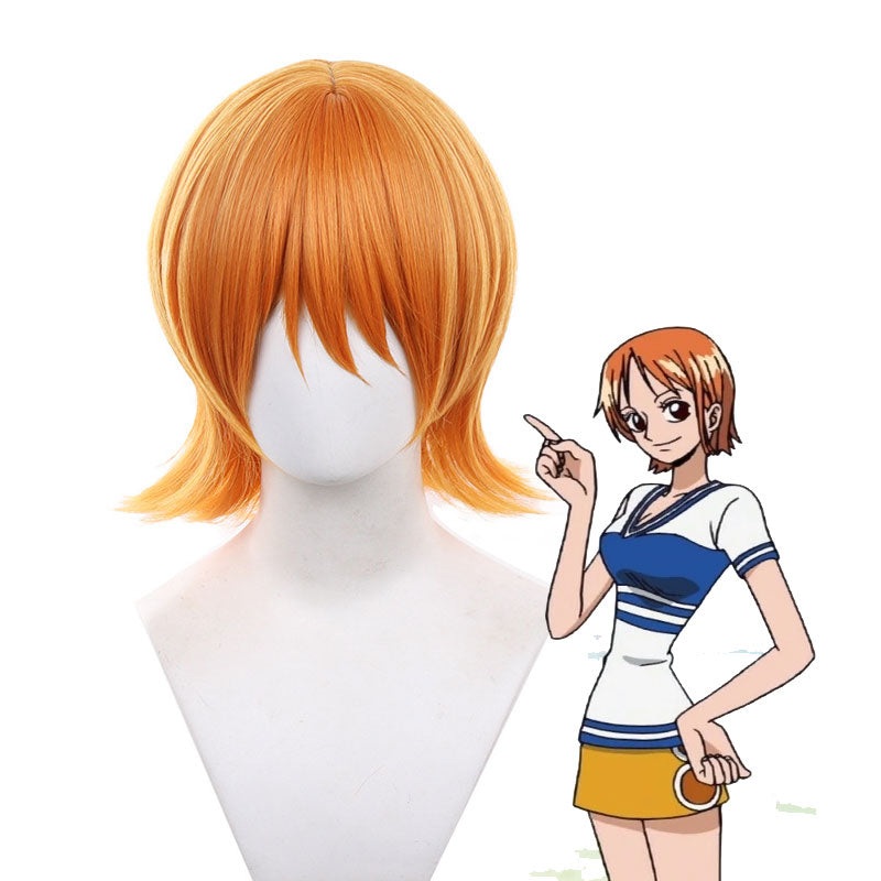 Anime One Piece Nami Short Cosplay WigsSource: One PieceCharacter: NamiColor: DarkOrangeLength: 40cm/15.76inchFeatures: Thiscosplay wigis based on the character Namifrom One Piece. This fashion wig can be used incosplayconventions andHalloweenparties.Cap S