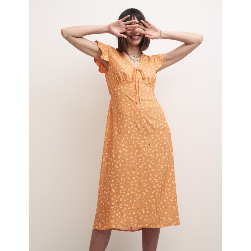 Be the first to review “Orange Ditsy Floral Lily Midi Tea Dress”