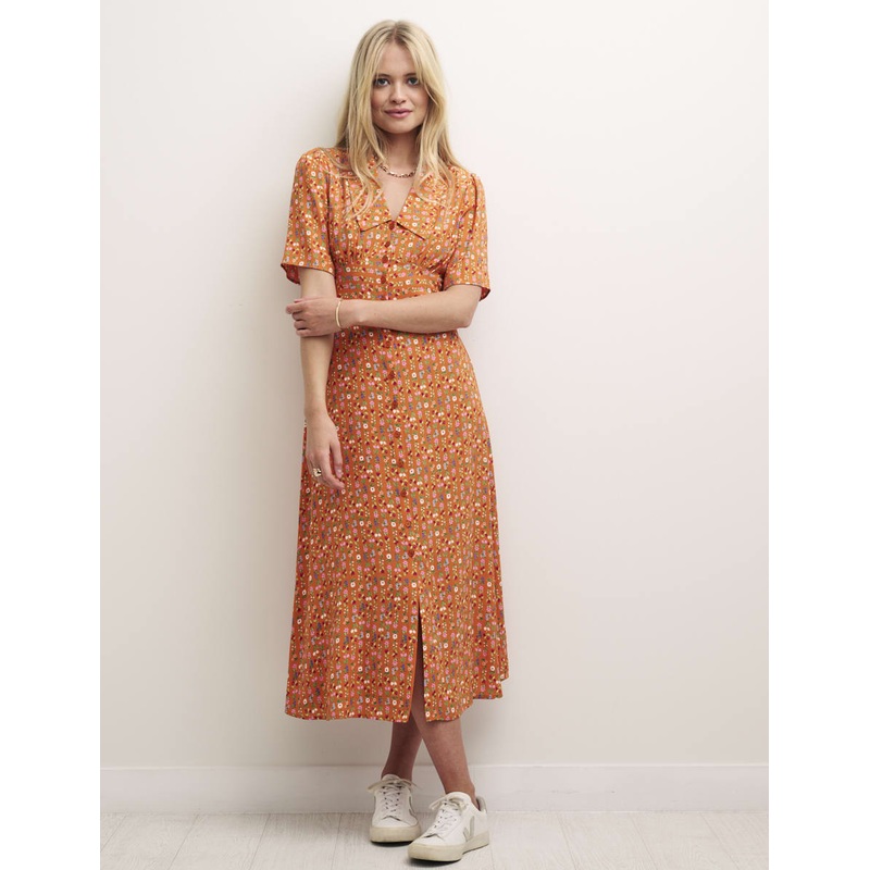 Ever feel like you were born in the wrong era? Throw it back to the 70s in our Daisy midi dress. We love it with trainers. Drop collar Mid-length sleeves Panelled waist Button-through front