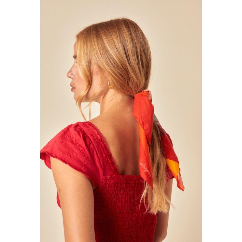 Style it your way. In a vibrant orange wave print, this square scarf adds a fresh feel tie it at the neck, in your hair or around your bag.