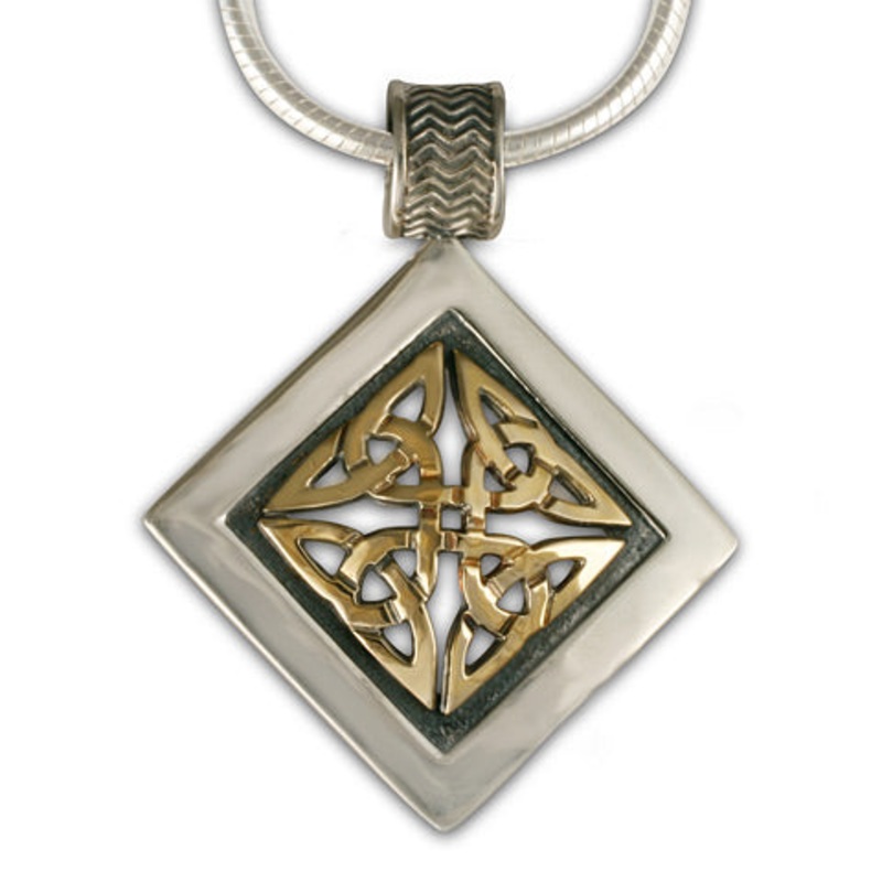 Here's a bold pendant, the sort of piece with a classic line and design that you can wear to an office job or an evening out. The design itself features four trinities. In Celtic myth and lore, trinity symbolizes the earth, heavens and underworld, and past