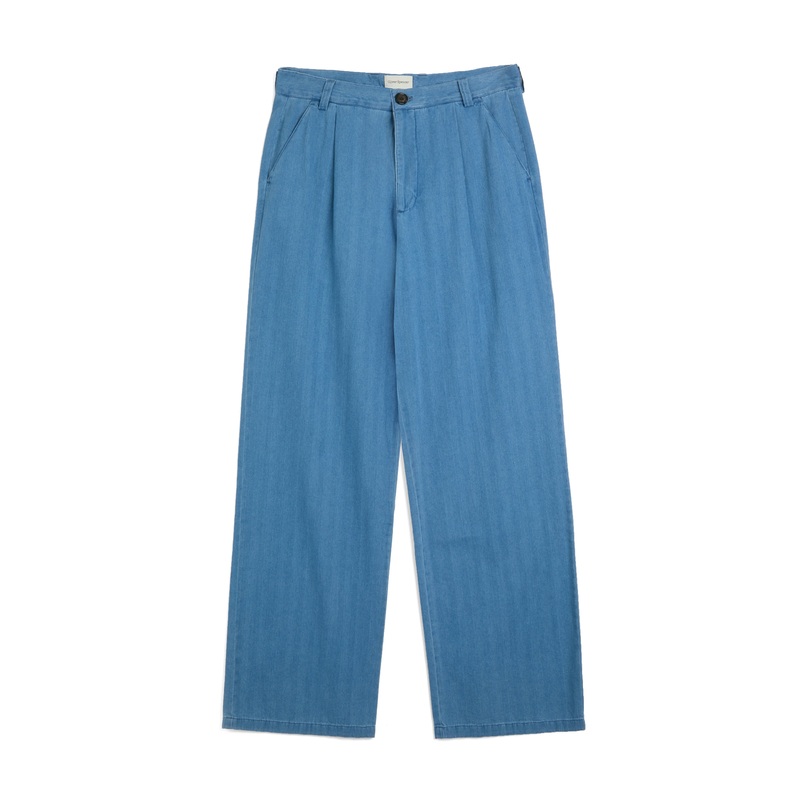 The Orsman trouser is a wide-leg style with single pleats for a contemporary silhouette. This iteration has been cut from a midweight indigo-dyed cotton with a herringbone weave. Can be worn as separates or as part of a suit.