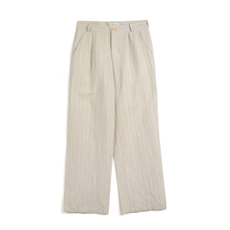 The Orsman trouser is a wide-leg style with single pleats for a contemporary silhouette. This iteration has been cut from a lightweight cotton and linen blend with a tonal stripe. Can be worn as separates or as part of a suit.