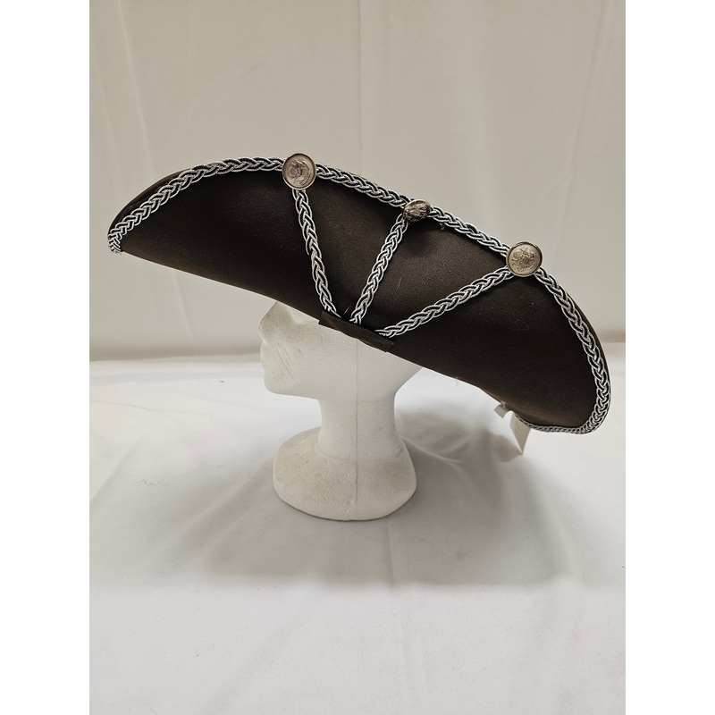 Oversized Buccaneer Hat with brocade trim - soft leathery feel with inside elastic adjustorColor: Dark Brown with Silver Trim & ButtonsHM789128