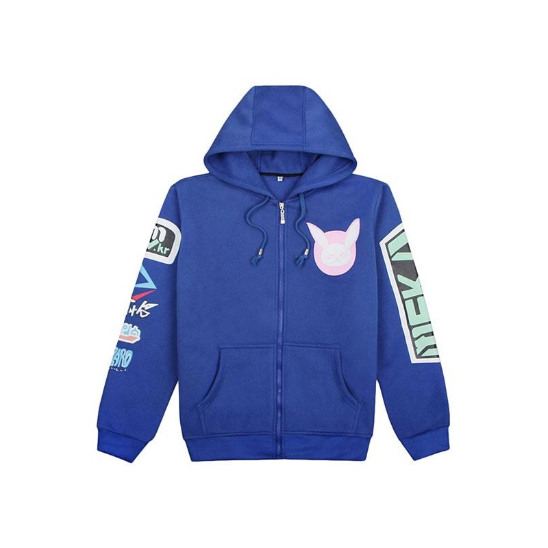Overwatch D.va Song hana fleece zip-up Hoodie hooded Sweatshirt Blue
