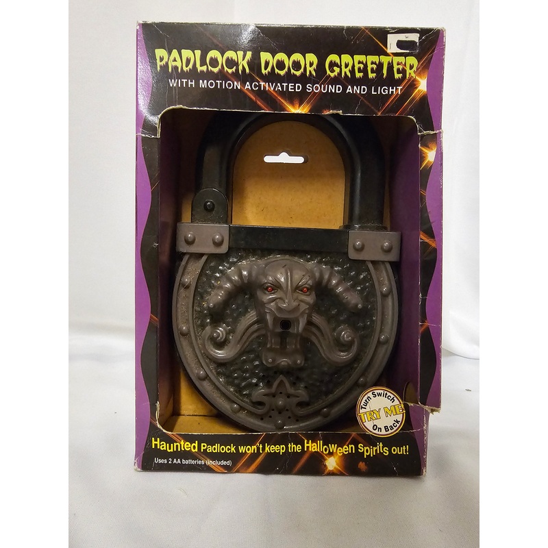 PMG Padlock Door Greeter DecorWith Motion Activated Sound & Light!Haunted padlock won't keep the Halloween Spirits out!Batteries not included.PM653396