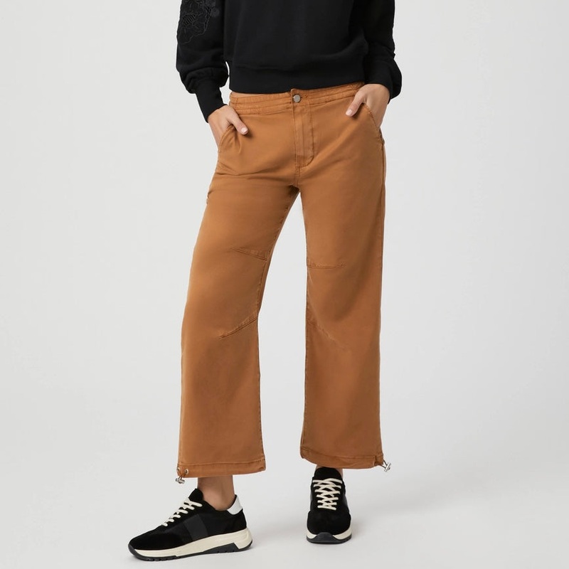 Paige Reid Jogger in Vintage Milk Cocoa. Take a break from your everyday denim with the new Reid Jogger in a vintage-inspired copper brown hue. Reid is designed with tactical styling details such as elasticated cinching at the ankle, back flap pockets, and knee darts. This effortlessly cool high-rise pant is made from a super soft fabric with the perfect amount of stretch for the most comfortable fit.
