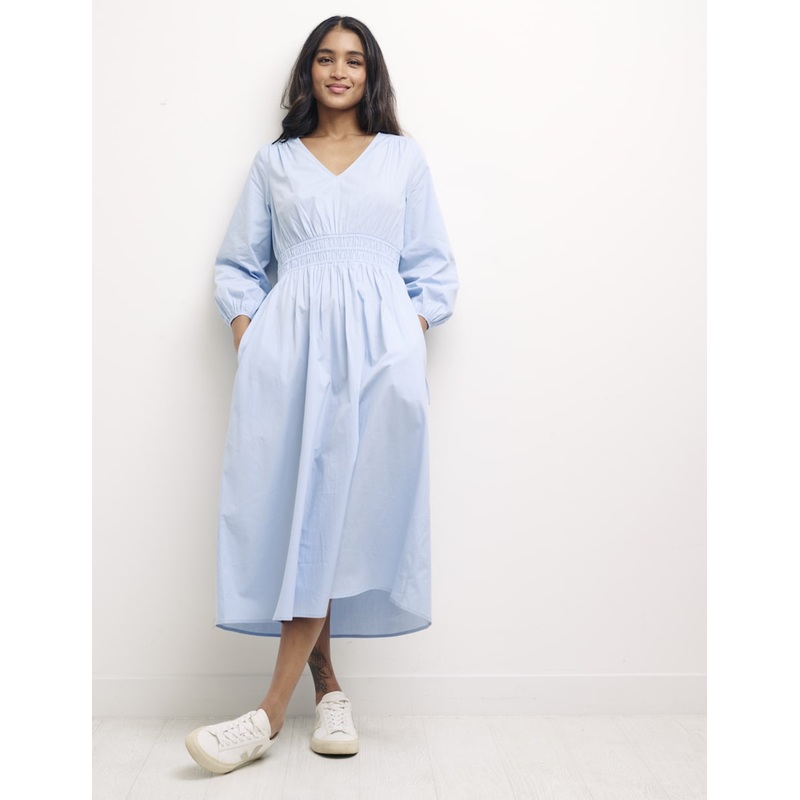 Blue skies call for Cassie. We love her so-now shirring and ribbon ties placed perfectly on the cuff. Finish off the look with trainers.V-neckMid-length sleevesSide pocketsShirred waistlineA-line skirt that skims the body