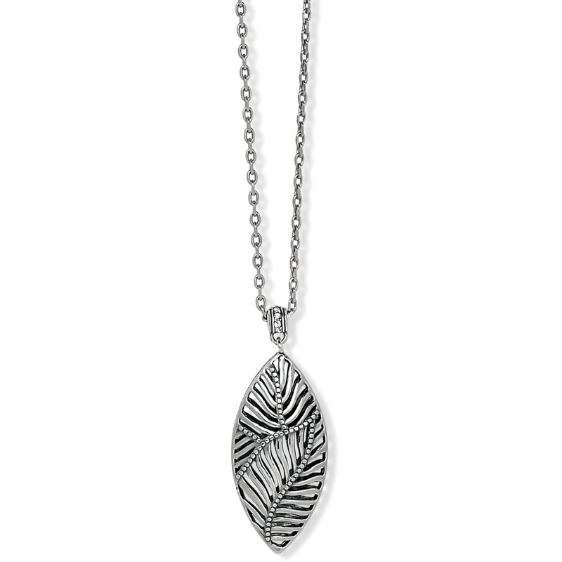 Palm leaf fronds feather out and overlap in nature, just like they do on this bold silver statement pendant necklace with pierced details.Style:#JM7285Collection:PalmettoColor:SilverClosure:Lobster ClawLength:18" - 21" AdjustablePendant Drop:2 1/4"Material