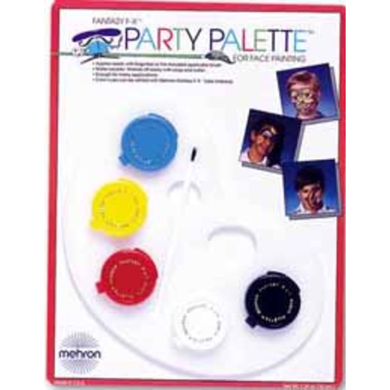 Applies easily with fingertips or with the included brush. Washes off easily with soap and water. This kit contains enough paint for many applications and the color cups can be refilled with Mehron Fantasy F-X tube makeup. ( see tube makeup below) Kit includes blue, red, yellow, white and black paints, palette and brush.