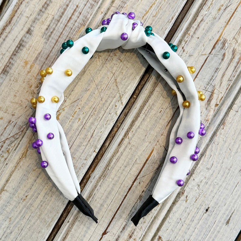 Pearl Mardi Gras Headband-white