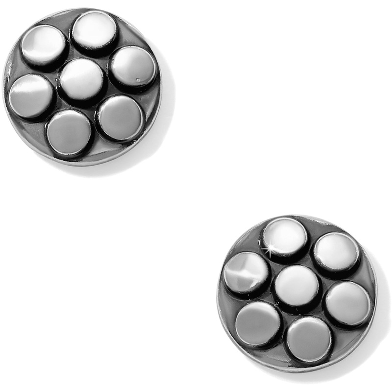 These post earrings are simple, delicate, and enhanced with silver pebble disc shapes inspired by Balinese dot jewelry.