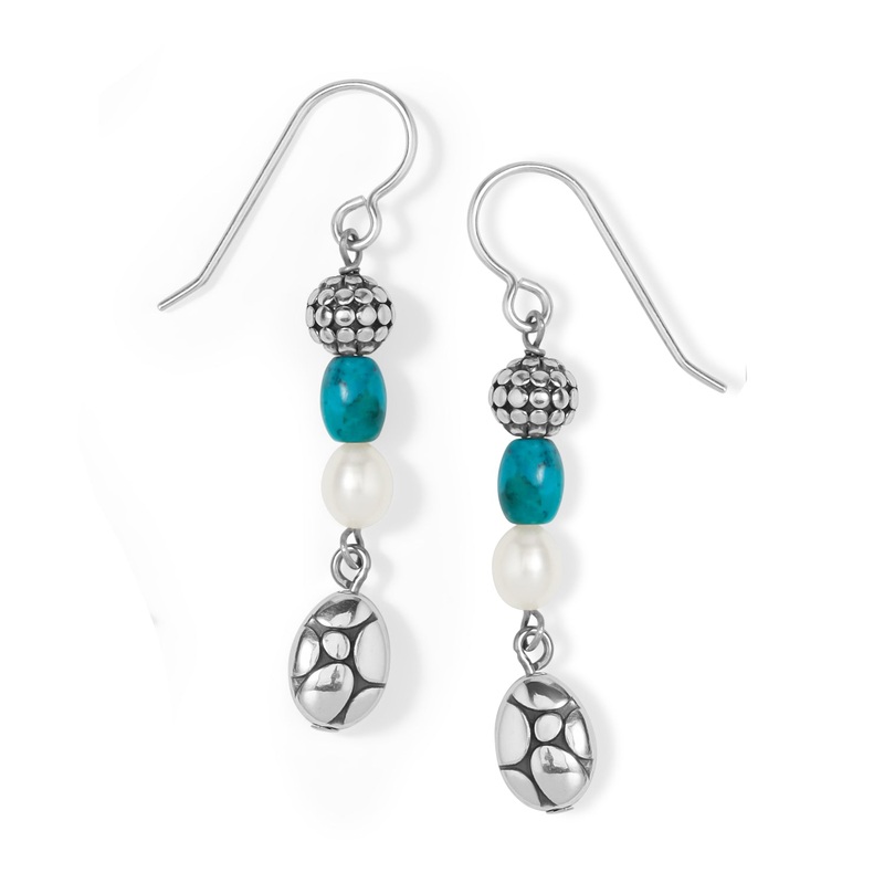 Our designer mixed in turquoise magnesite beads and freshwater rice pearls with her Balinese-inspired pebble mosaics for a stunning look. They also look sensational worn with the pebble-and-dot Medali Collection.
