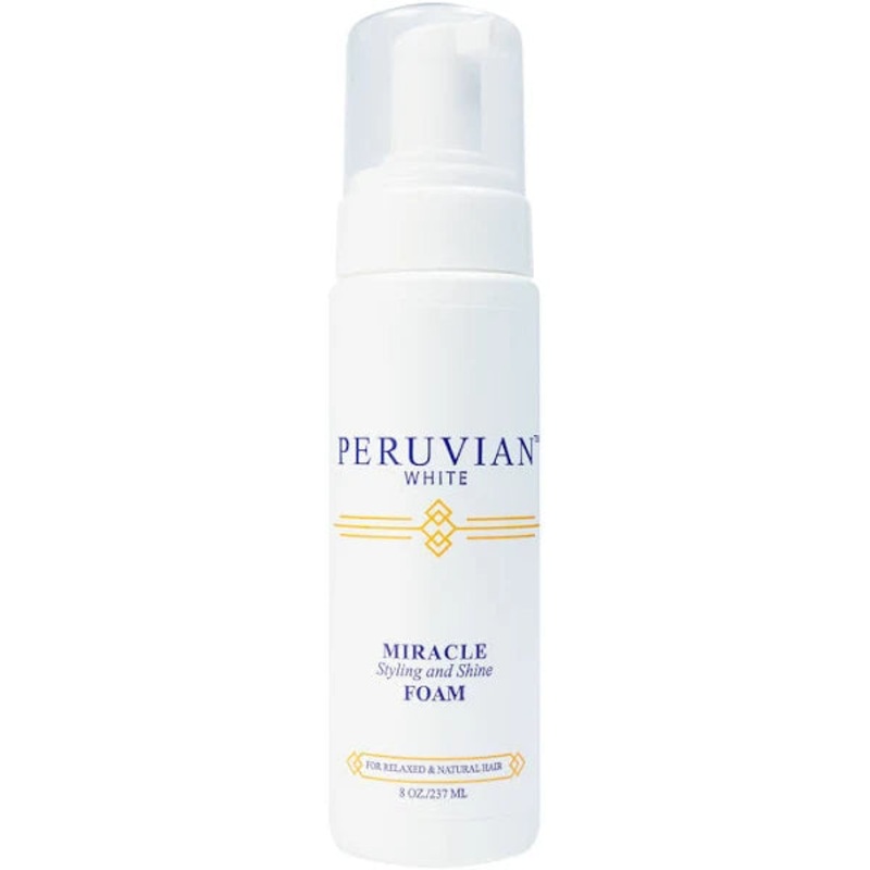 Peruvian White Miracle Styling and Shine Foam is created to dry quick and style quick on all your wet styles. Leaves a long lasting sheen on the hair without build up.