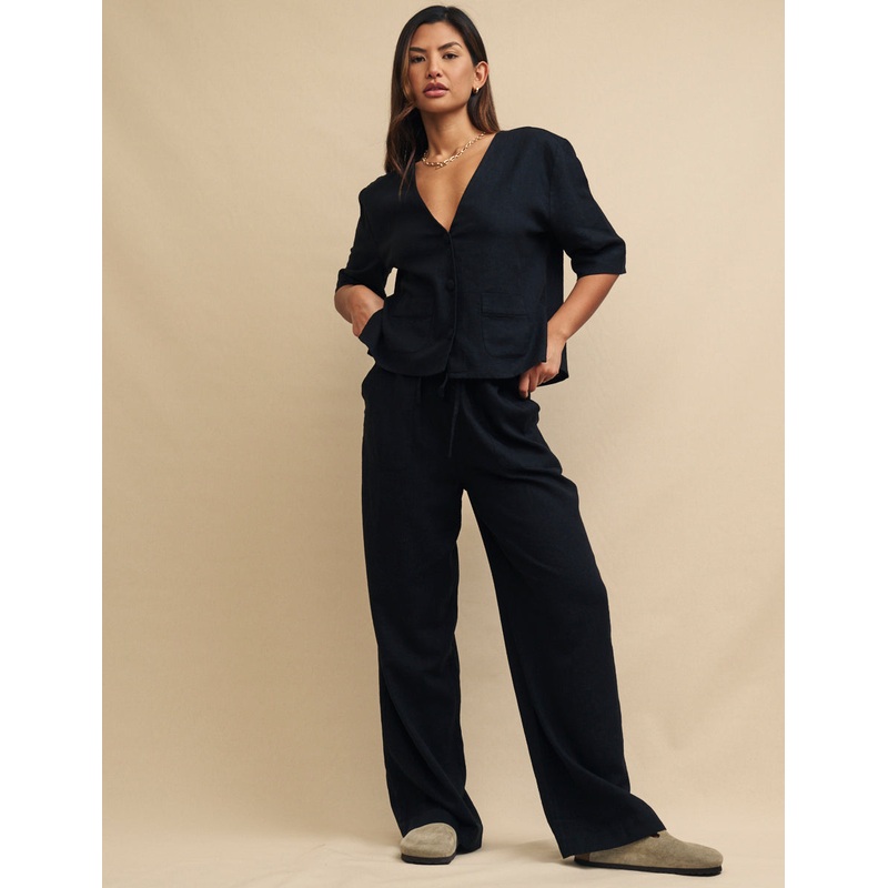 Welcome to our petite collection. These black wide leg trousers come stitched with oversized pockets and a soft drawstring waist in a breezy fit. Team yours with a cute top and suede slip-on shoes.Drawstring waistPocketsWide leg cut that skims the body