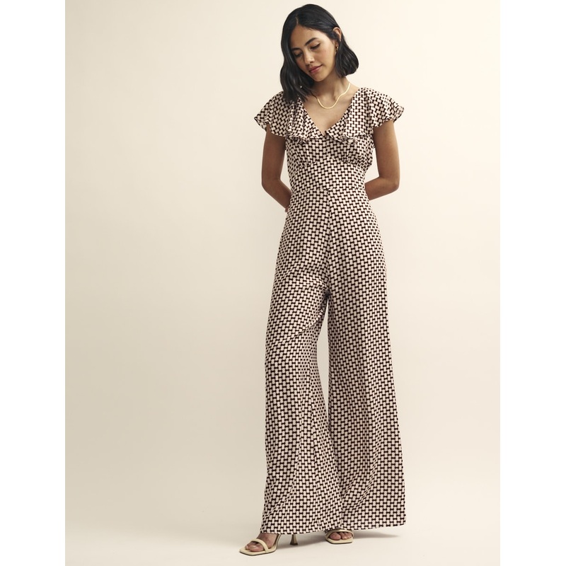 So 70s, so now. This stylish jumpsuit comes ruffled with a flouncy collar designed to float across your shoulders. A fitted waistline pulls you in before kicking out effortlessly to a pair of wide trousers. The fact Sukis as pretty from the front as she is from the back isnt to be overlooked. Team yours with barely-there sandals.