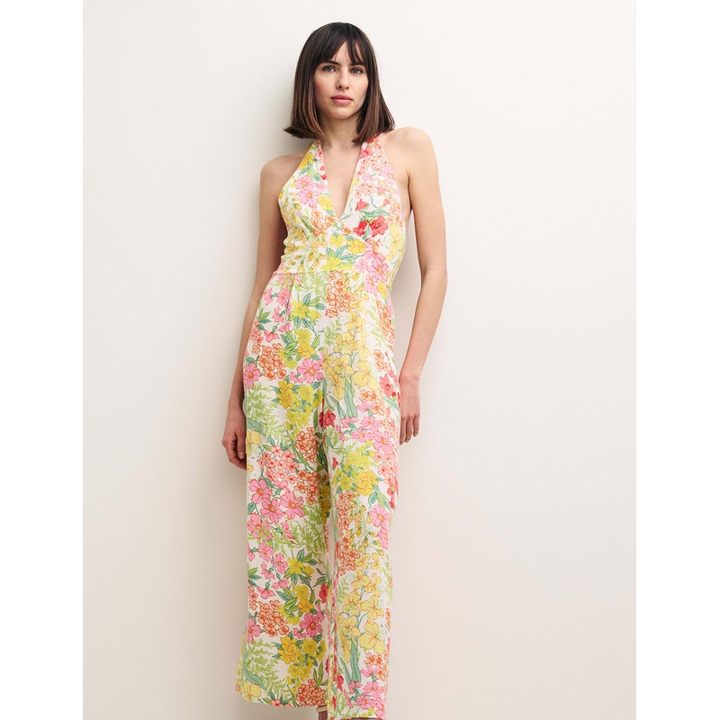 One more reason to book it. Designed for a petite frame, our Nuria jumpsuit is a dream with a halter neckline that ties into a soft bow. The floral fabric drapes effortlessly with billowy wide leg trousers that are just asking to be whisked away on holiday. Style her with sandals in the day before switching into platforms later.