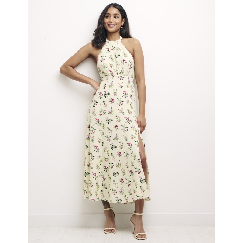 Get ready for an all-eyes-on-me moment in Holly. Drawing attention by her halter neckline and sleeveless silhouette, this soft green midaxi dress boasts an open-back design and a self-tie waist to the rear. Complete with a subtle leg slit, strappy heels at your next party are the best accompaniment.