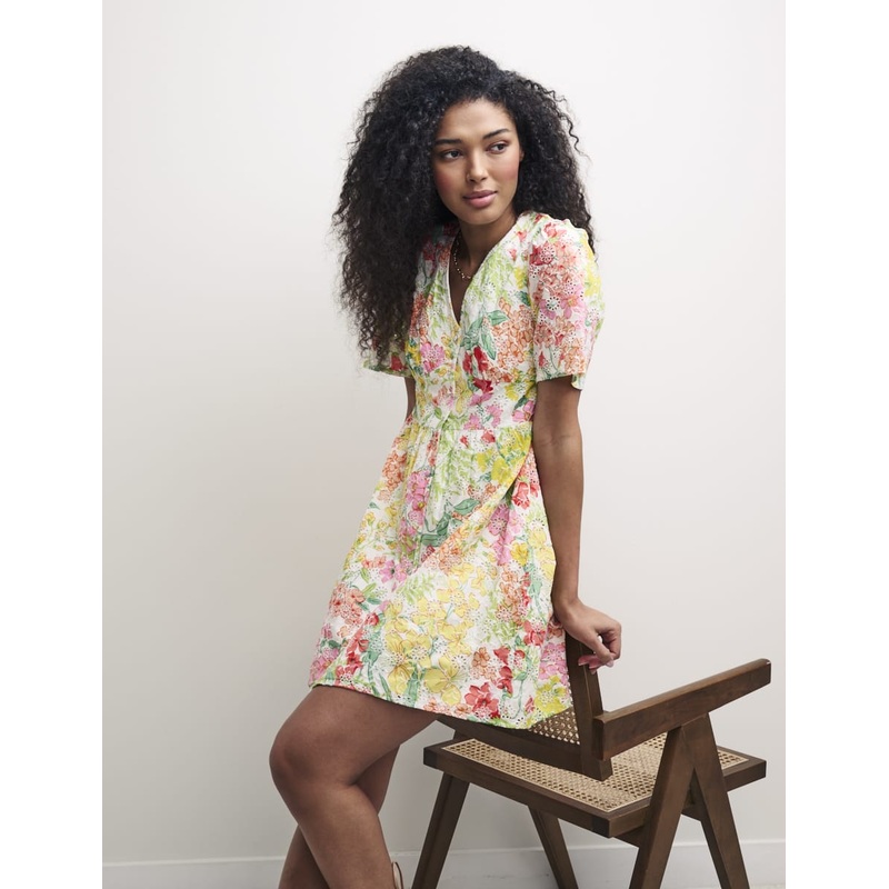 Petite Multi Floral Broderie Mietta Mini Dress