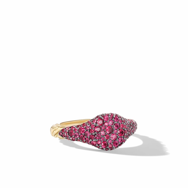 Petite Pav Pinky Ring in 18K Yellow Gold with Red Rubies, 7mm