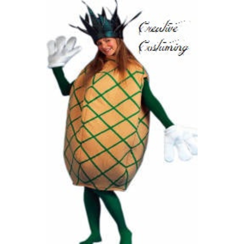 Includes: Silky Golden Yellow/Orange covered foam bodysuit accented with green lattice print stripes & separate dark green spiky stem hat.
