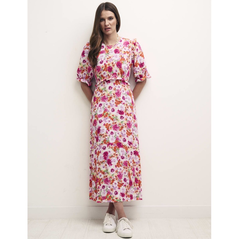 Another Felicia dress for your collection, with its soft shape-skimming fit refreshed in a pastel chrysanthemum print.Pair the midi length with heels or flats.Round neckGathered mid sleevesRufflesConcealed back zip