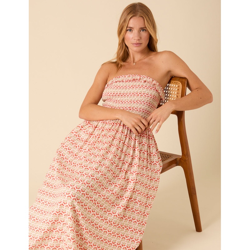 Pink Bandeau Printed Bela Midi Dress