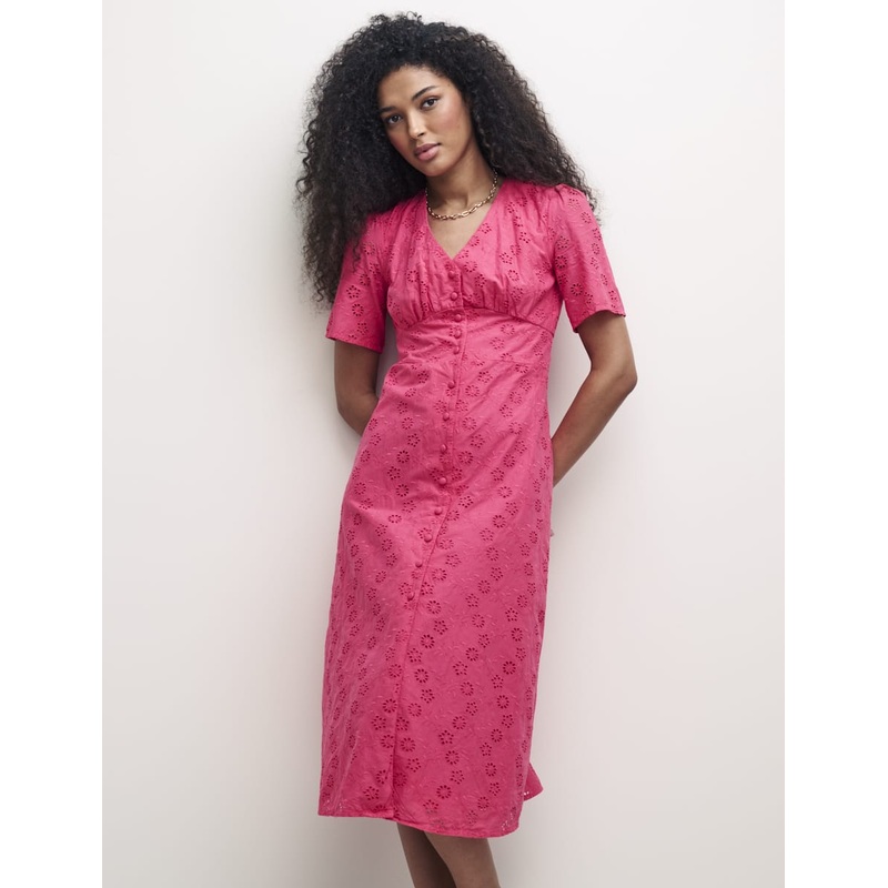 Our trophy style in so-now pink. Alexa is all about the vintage-inspired details, from the timeless tea dress cut to the delicate covered buttons. Weve also added a subtle shirred back to gently pull you in at the waist. Style yours with easy-going trainers.
